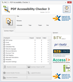 These softwares allow the execution of automatic tests on a PDF document and the detection of accessibility problems: