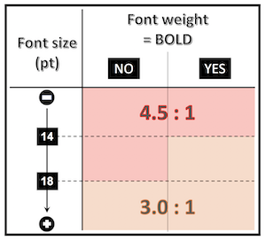 The contrast between the colour of the background and the text must be appropriate (can be measured with the Colour Contrast Analyser tool or with the Color Contrast Calculator feature of Accessibility Inspector since Xcode 11).