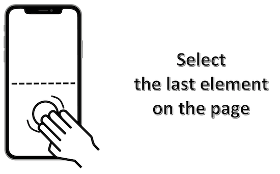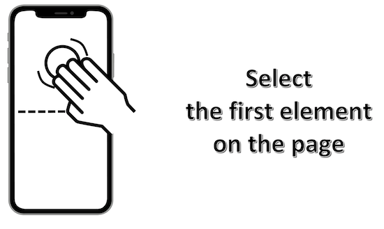 As soon as a menu shows up, swipe to the desired page title by flicking left/right using one finger and validate the selection thanks to a double-tap with one finger.