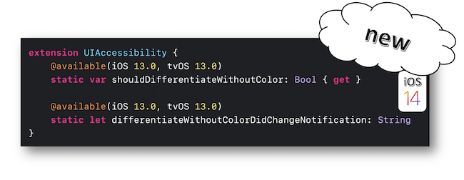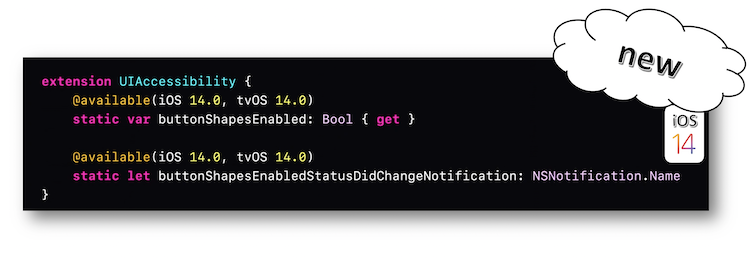 Since iOS 7, graphical elements like buttons can stand out thanks to the user setting Button Shapes whose state is now available in iOS 14 through notifications.
