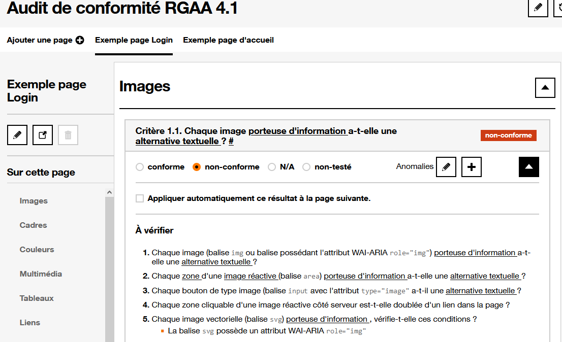 Vous pouvez maintenant auditer un site, en regardant les 106 critères du RGAA.